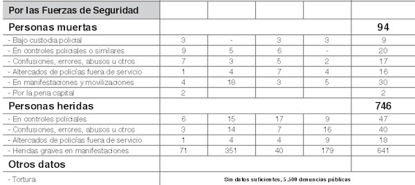 El informe no detalla caso por caso, tan sólo aporta una clasificación de las supuestas causas de la muertes en cada categoría. En la de "muerto por fuerzas de seguridad" incluye 94 casos, pero cuando se desbrozan los datos se encuentra la trampa. Sólo tres de esos casos se produjeron "bajo custodia policial" y además siempre antes de 1975. Se incluyen también dos casos por pena de muerte, también anteriores a 1975.