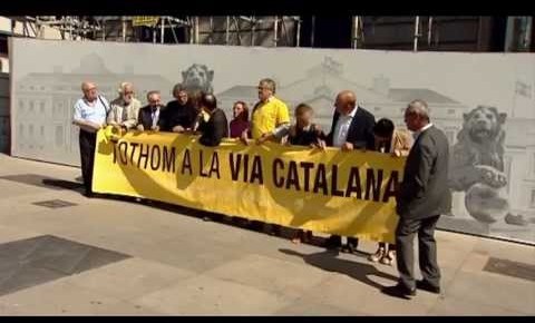 Las obras que tienen lugar en el Congreso se convirtieron hoy en un 'obstáculo' para los independentistas parlamentarios. Al mediodía, diputados de CIU, ERC, PNV, BNG, CC y Amaiur asistieron al pórtico central de la cámara baja donde desplegaron una pancarta de apoyo a la cadena humana que se celebrará en la Diada del próximo 11 de septiembre.