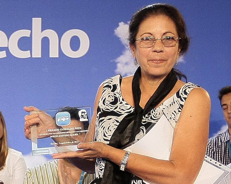 Ofelia Acevedo no se limitó a dar las gracias por el premio que recibía, que lleva el nombre de su marido fallecido por defender la libertad en Cuba: Oswaldo Payá. Fue valiente y enormemente reivindicativa. Ante la cúpula nacional de los populares, no guardó silencio ante la situación judicial que atraviesa Ángel Carromero, al que considera víctima de un "funesto atentado". Pasó de la emoción inicial a una contundencia fuera de toda duda: "Ángel es inocente", dijo sin titubear, para instar al Partido Popular -que le entregaba el galardón- a que "en honor a la verdad y como acto de justicia" haga todo lo posible para la “libertad total” del dirigente de Nuevas Generaciones.