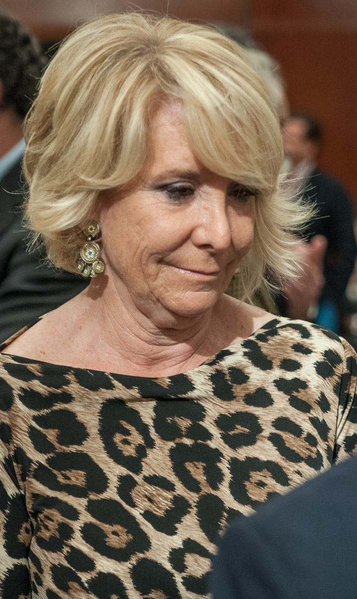 Esperanza Aguirre, a su llegada al salón en el que se ha celebrado la presentación