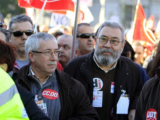 Antes de que arrancara la marcha, los líderes sindicales comparecían juntos para expresar su preocupación por el anuncio realizado por la Comisión Europea del "esfuerzo estructural" de 2.500 millones que tiene que hacer España, y advertían de que el Gobierno podía saldar este recorte acudiendo a las prestaciones sociales.