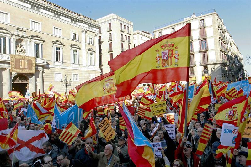 Miles de catalanes se manifiestan en Barcelona para defender la Constitución española