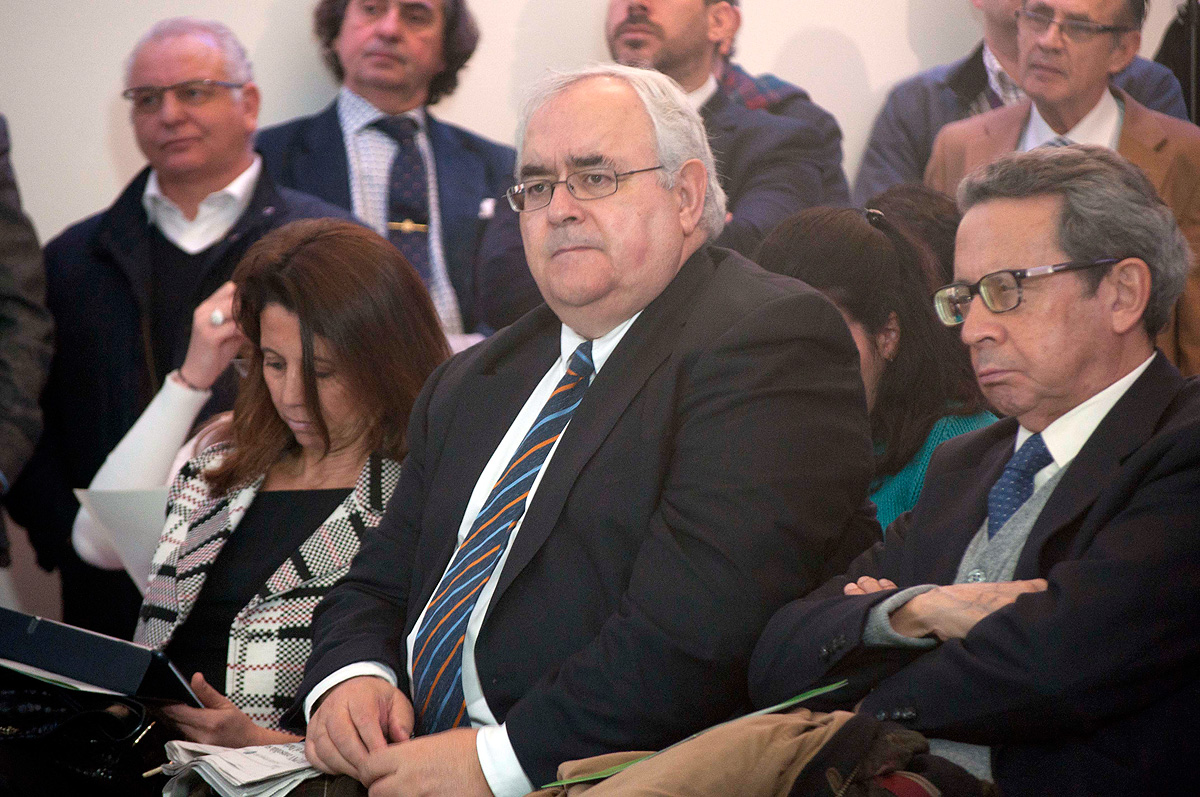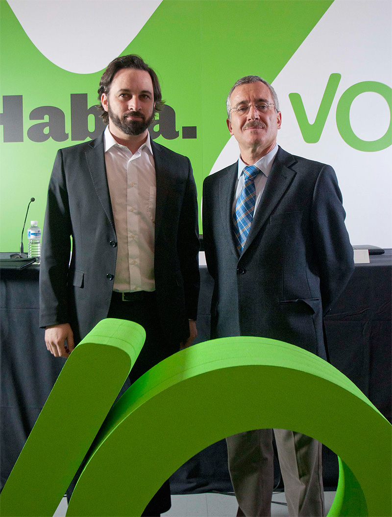 José Luis González Quirós (derecha), Santiago Abascal e Ignacio Camuñas. (izquierda)