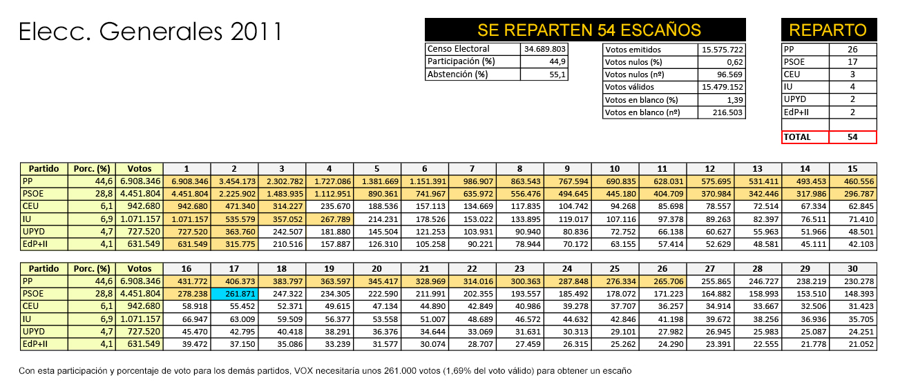 Con este planteamiento, la formación de Abascal necesitaría obtener más de 260.000 votos para obtener un escaño.