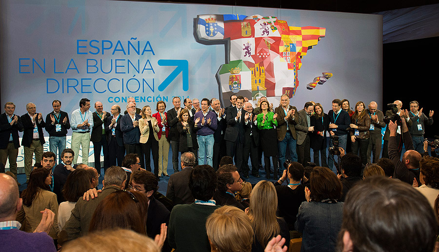 Un auditorio a rebosar de militantes aplaudiendo a rabiar. Las tres primeras filas repletas de altos cargos: miembros del Gobierno, barones territoriales, la dirección nacional del Partido Popular en pleno... Y un grito por encima de cualquier otro, a pesar de que la intención inicial era vender la recuperación económica: "¡Unidad!". Como repetían los portavoces oficiales, "hay un gran ambiente, todos estamos con el presidente". Pero sólo hacía falta rascar un poco: "No hay contenido, falta política", según un dirigente madrileño. "¿Aznar? Sí ha estado, lo ha inundado todo pese a su ausencia", resumía en privado.