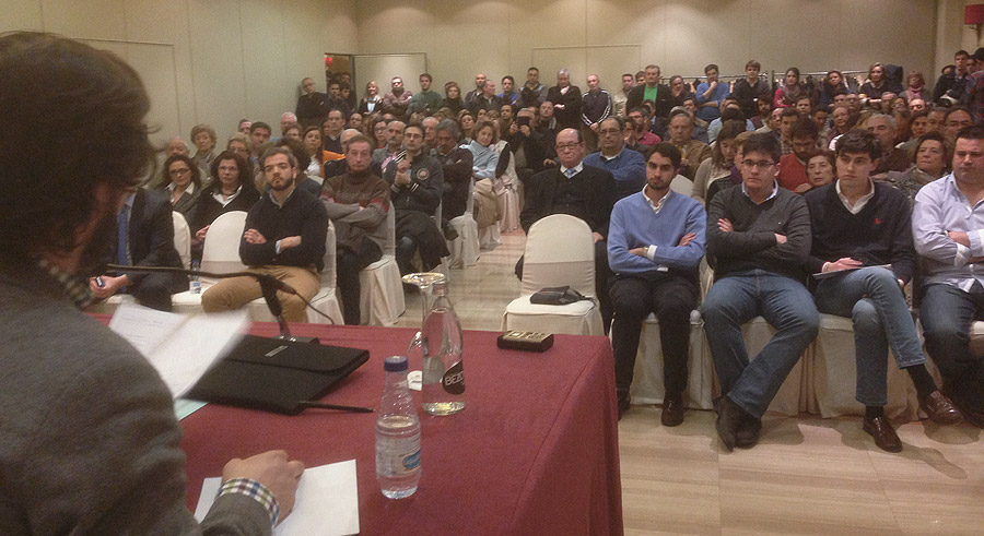 Aunque no era la intención de los convocantes, la conferencia de Santiago Abascal ha derivado rápidamente en un acto sobre el nuevo partido. Según apuntan fuentes presentes, tras una breve introducción se ha pasado a un turno de preguntas de casi hora y media de duración en el que los asistentes han mostrado su interés por conocer el posicionamiento concreto de Vox en multitud de temas.