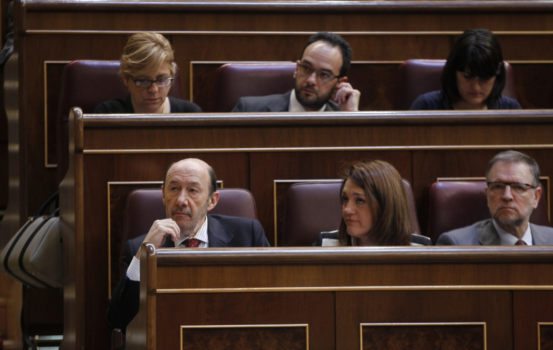 Rubalcaba, Soraya Rodríguez y Valenciano, a su llegada al Congreso para asistir a la primera jornada del debate sobre el estado de la nación