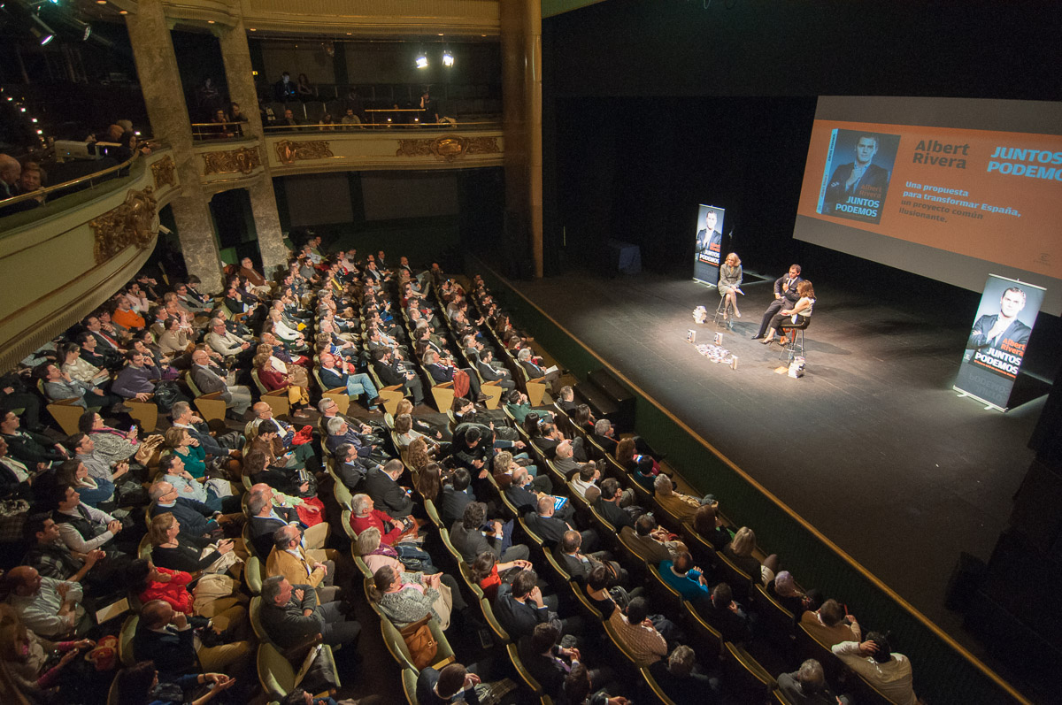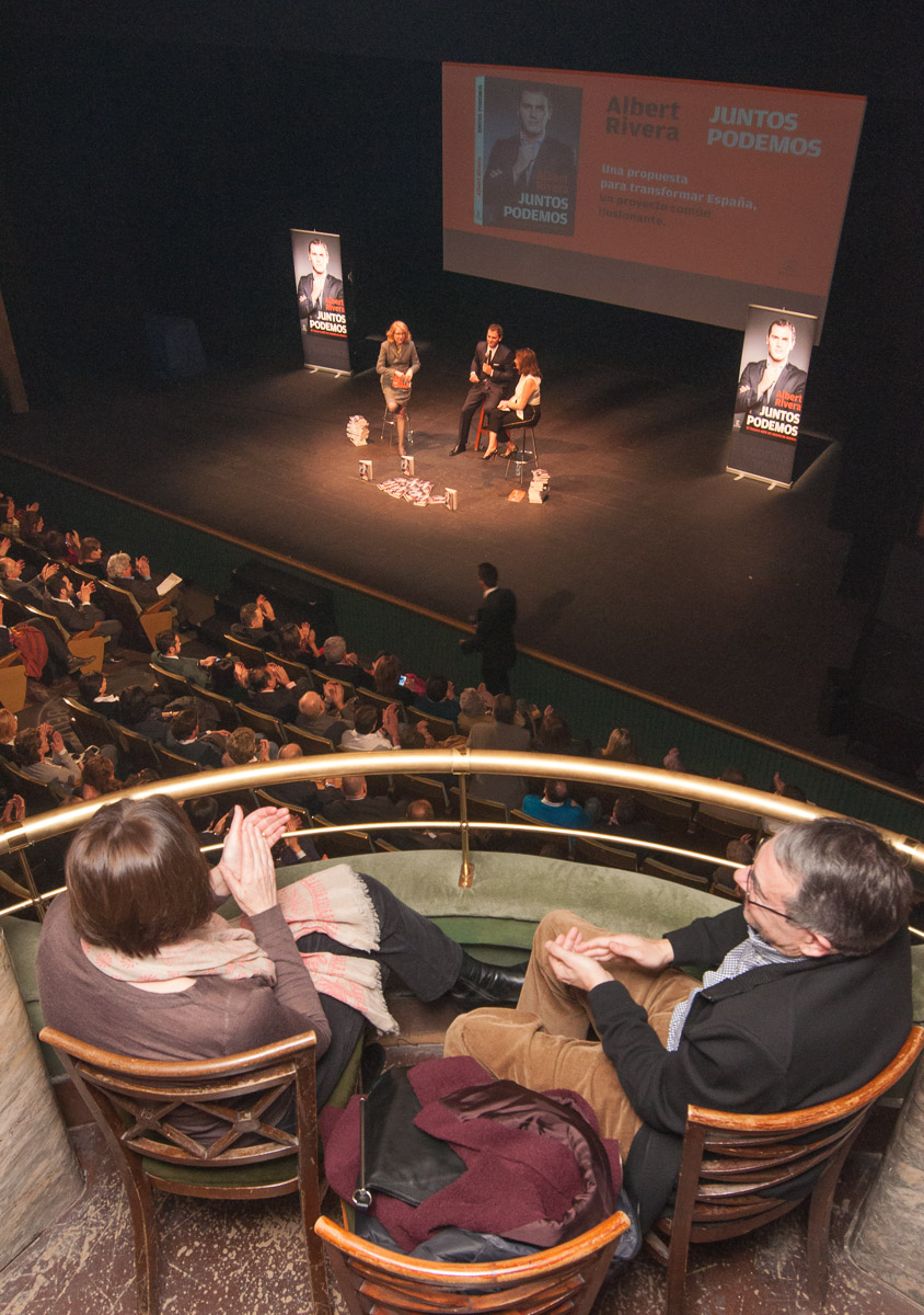 Los tres participantes en el acto, Ana Rosa Semprún, de La Esfera de los Libros, Albert Rivera y Ana Rosa Quintana