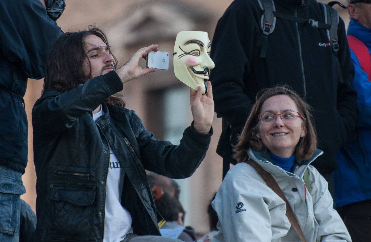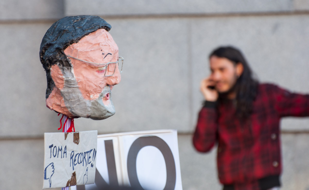 Un disfraz de preso y careta de banquero, alto nivel argumentario