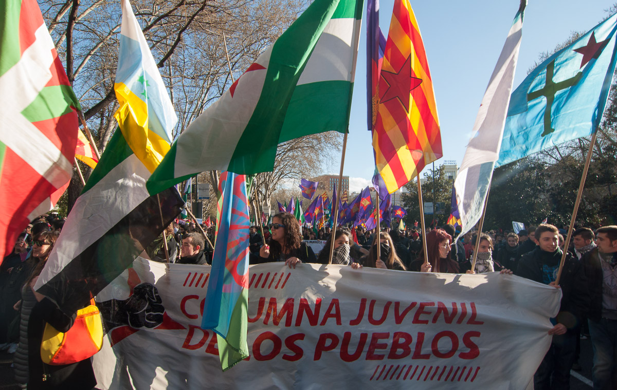 La columna juvenil de los pueblos avanzaba al grito de "estado español, cárcel de pueblos"