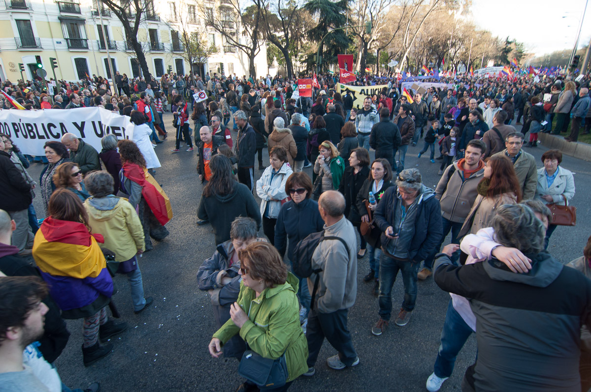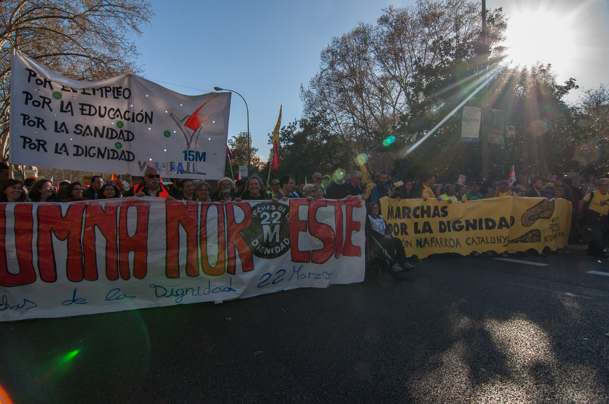 Lo más granado -y variado- de la extrema izquierda más radical se ha manifestado en Madrid este 22-M. Decenas de miles de personas han recorrido el espacio entre las plazas de Atocha y Colón.