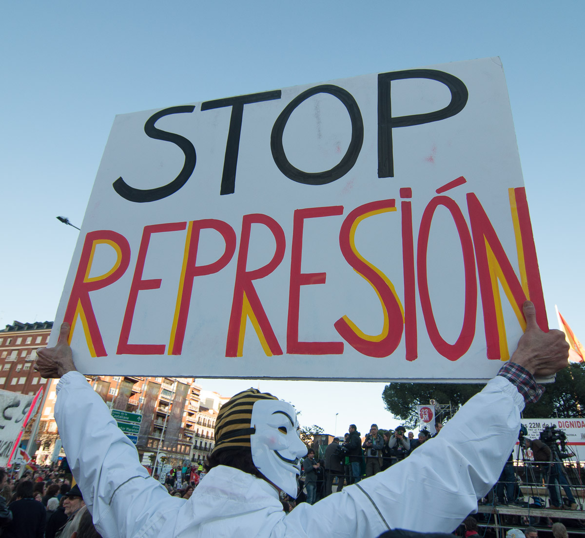 Stop Represión pedía este hombre con un cartel frente al escenario