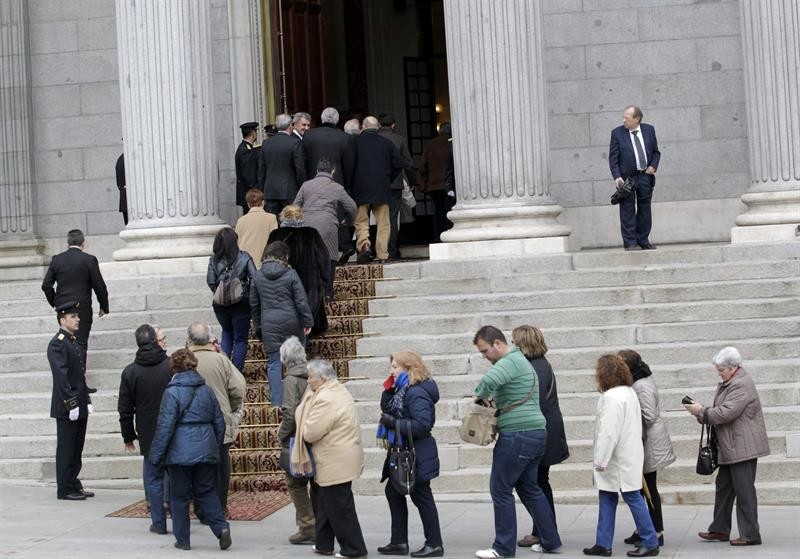 La capilla ardiente se abrió a las 10:00 en el Salón de Pasos Perdidos, pero no fue hasta que los Reyes abandonaron el Congreso de los Diputados, a las 12.00 horas cuando se abrieron las puertas al público que, desde las 7:00 se amontona a las puertas del Congreso.