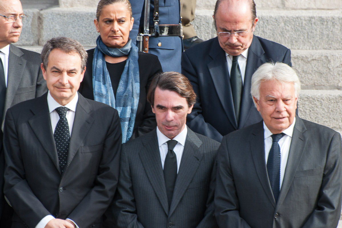 Los hijos y nietos del presidente centrista han caminado unos pasos detrás del ataúd, que iba cubierto con una bandera de España. En la escalinata del Palacio del Congreso esperaban también los expresidentes Felipe González, José María Aznar y José Luis Rodríguez Zapatero con su mujer, Sonsoles Espinosa. Entre aplausos del público asistente, el cortejo fúnebre siguió su camino hasta el Salón de Pasos Perdidos del Congreso, donde se instaló la capilla ardiente.