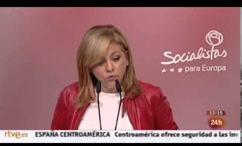 En un acto del PSOE en el que estaban presentes los expresidentes Felipe González y José Luis Rodríguez Zapatero, el secretario general del PSOE, Alfredo Pérez Rubalcaba, y el candidato de los socialdemócratas, Martin Schulz, Valenciano ha hecho un pequeño discurso en francés.