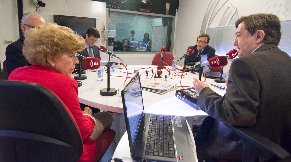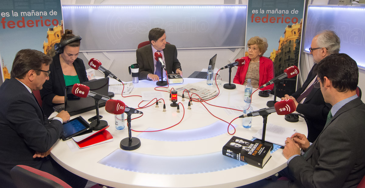 La mesa de tertulia, con José Alejandro Vara, Rosana Laviada, Jiménez Losantos, Pilar Urbano, Florentino Portero y Javier Somalo