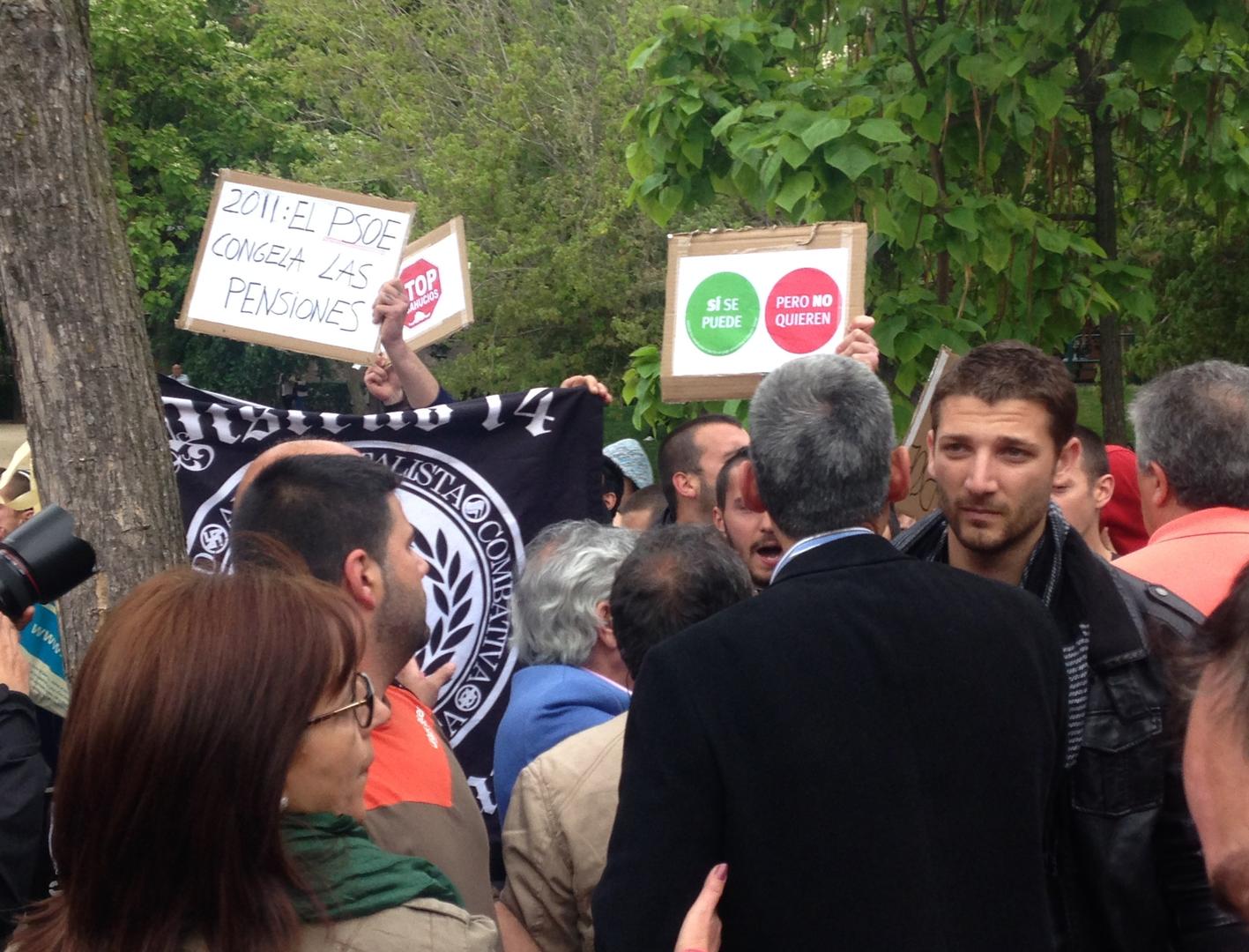 Visiblemente contrariada y sin perder la sonrisa, la aspirante 'oficiosa' a las primarias aseguró que "Con todo el respeto para todo el mundo... me siento muy orgullosa de todo el esfuerzo que hicimos por poner en marcha la renta básica de emancipación para que los jóvenes de este país pudieran poner en marcha su vida. Mereció la pena el esfuerzo". Los dos centeneras de militantes asistentes intentaron acallar a los manifestantes al grito de "¡Ista, ista, ista, Europa socialista!", pero Chacón le dijo "no os preocupéis" y continuó su discurso".