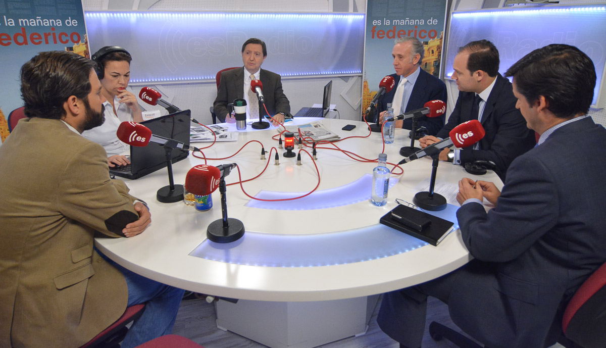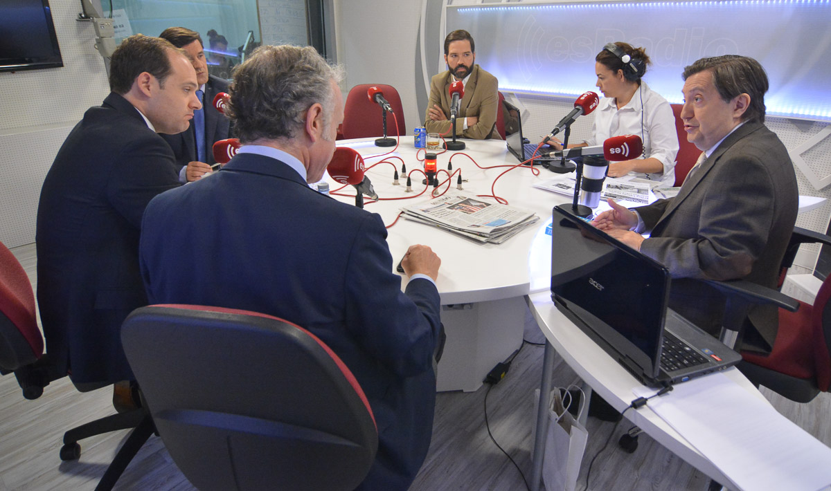 La mesa de la tertulia con Dieter Brandau, Rosana Laviada, Federico Jiménez Losantos, Eduardo Inda, Esteban Urreiztieta y Javier Somalo