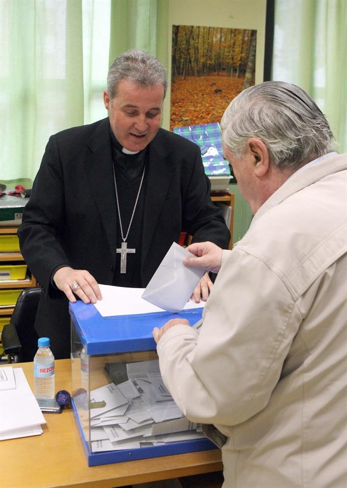 Una de las curiosidades de la jornada ha sido ver al obispo de Bilbao, Mario Iceta, cumplir con su obligación al ejercer como presidente de una mesa electoral