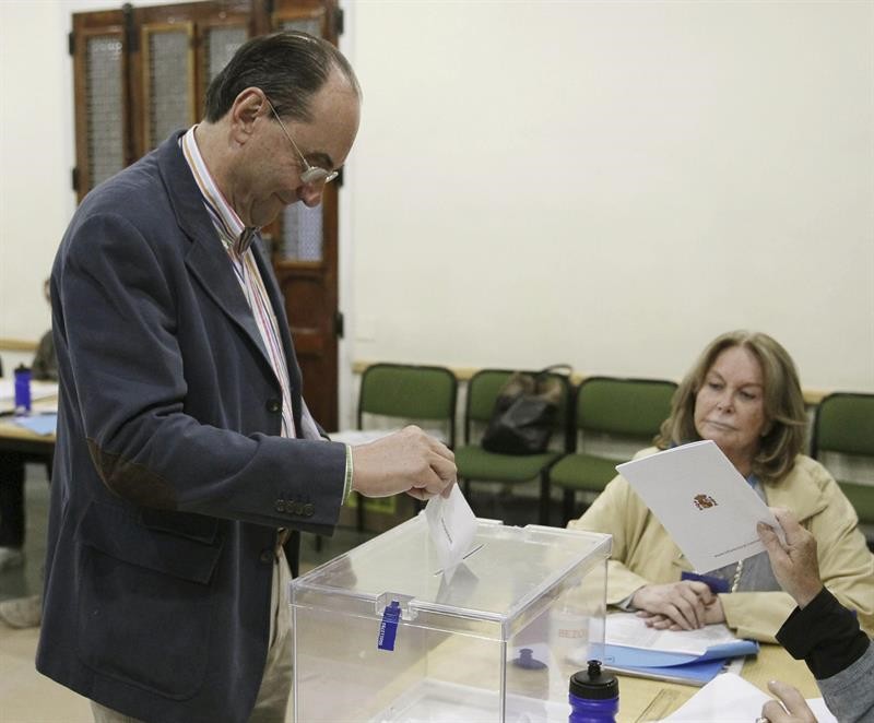 El candidato del PP, Miguel Arias Cañete, votando este domingo