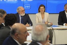Cospedal reunió este lunes a los eurodiputados del PP. Algunos lamentan que Salafranca o Garriga no estuvieran en puestos de salida.