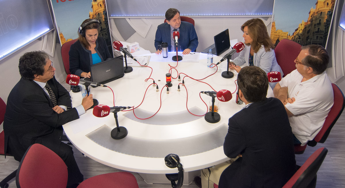 La mesa de tertulia con Tomás Cuesta, Rosana Laviada, Federico Jiménez Losantos, Carina Mejías, Luis Herrero y Dieter Brandau