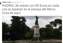 Cientos de viandantes se han agolpado en El Retiro en busca de los veintiséis sobres con 50 euros cada uno.