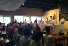 Imagen de la abarrotada eucaristía en la capilla. | LD