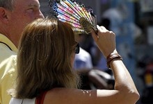 Una mujer se protege del Sol con un abanico en Madrid | Efe