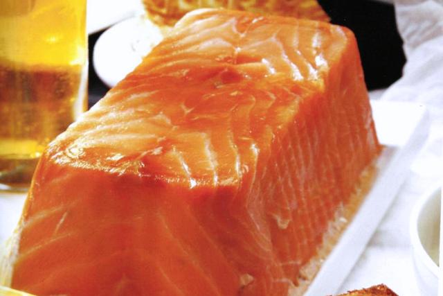 Pastel frío de salmón, atún y gambitas