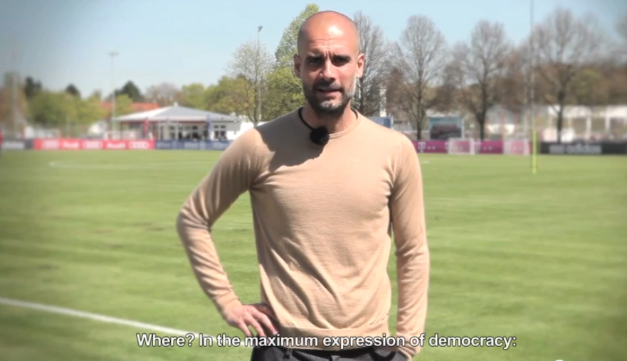Pep Guardiola ha vuelto a dar su apoyo público al referéndum separatista convocado por el gobierno catalán el próximo 9 de noviembre. El entrenador del Bayern de Múnich es uno de los protagonistas de la campaña "Catalunya juega un partido decisivo el 9 de noviembre de 2014", con el que la Generalidad solicita el voto a través de la plataforma Catalonia Votes.