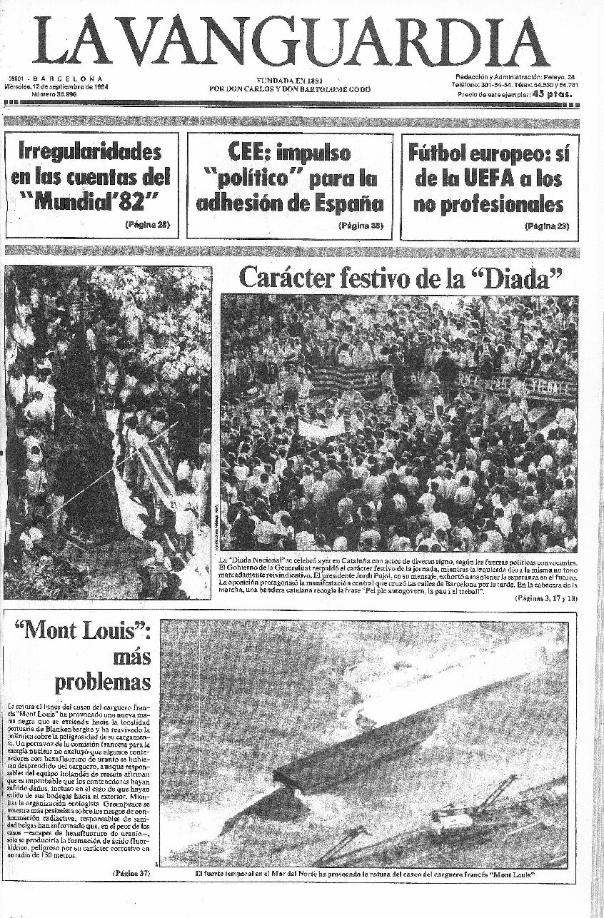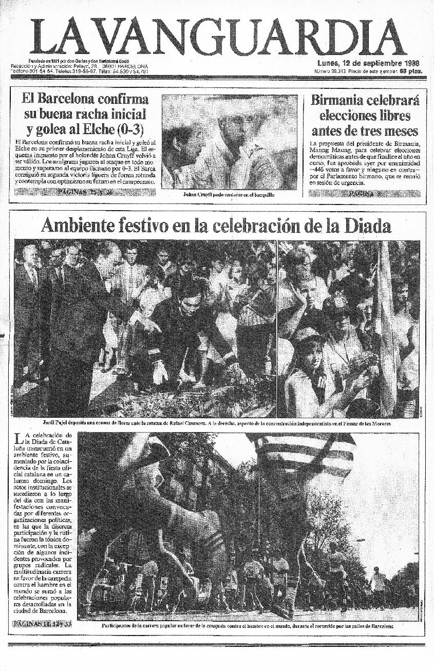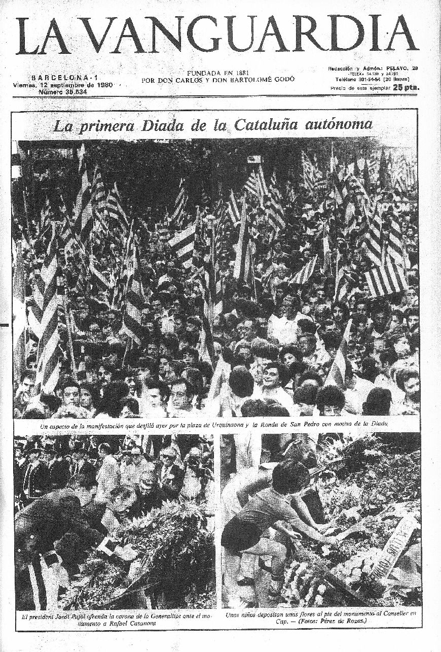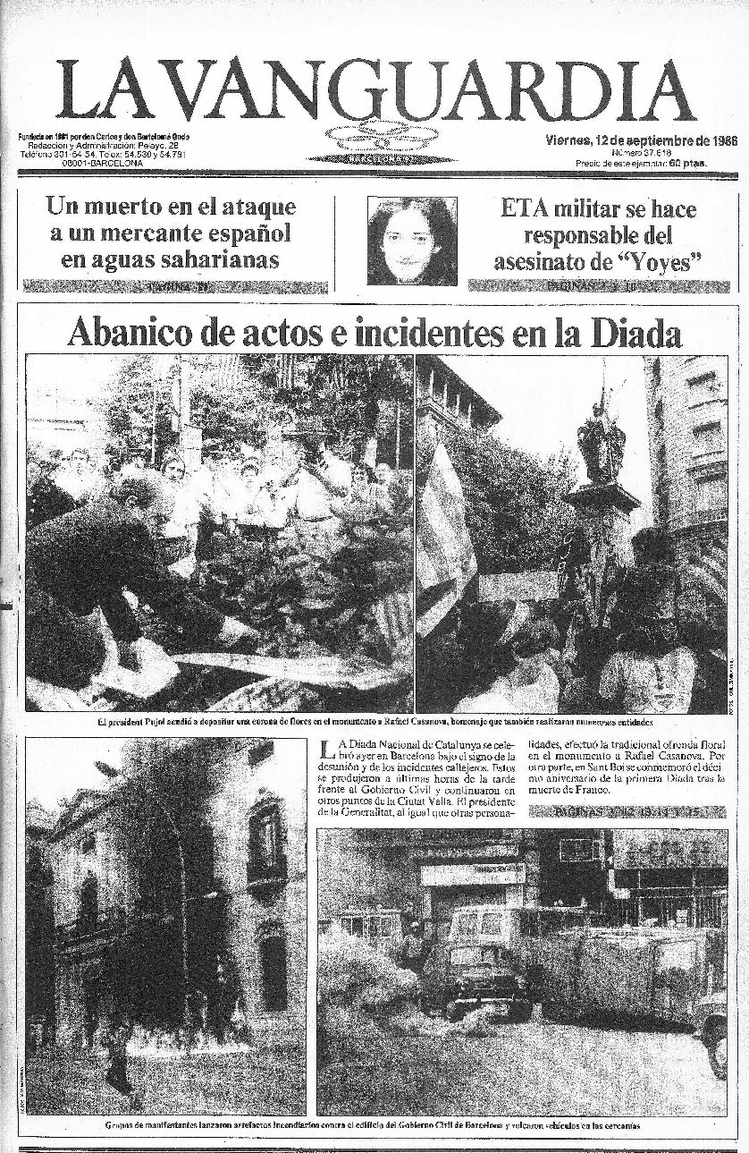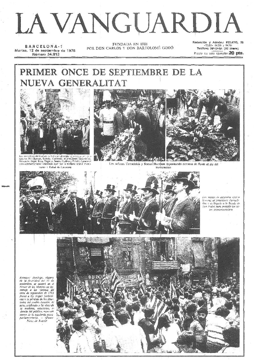 Recopilación de portadas de los días posteriores (y alguno anterior debido a que hubo una serie de años en los que La Vanguardia no se publicaba los lunes) a la Diada -11 de septiembre- de La Vanguardia desde 1939.