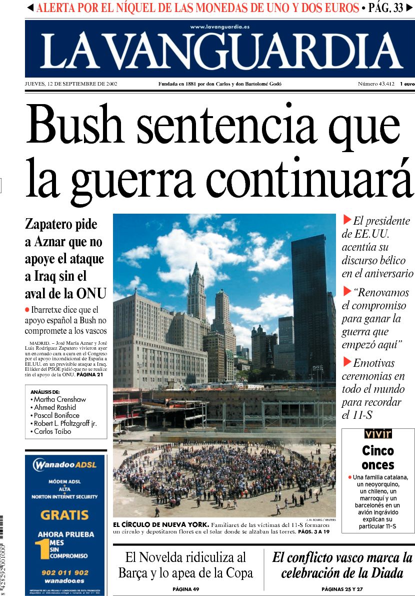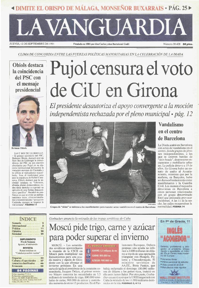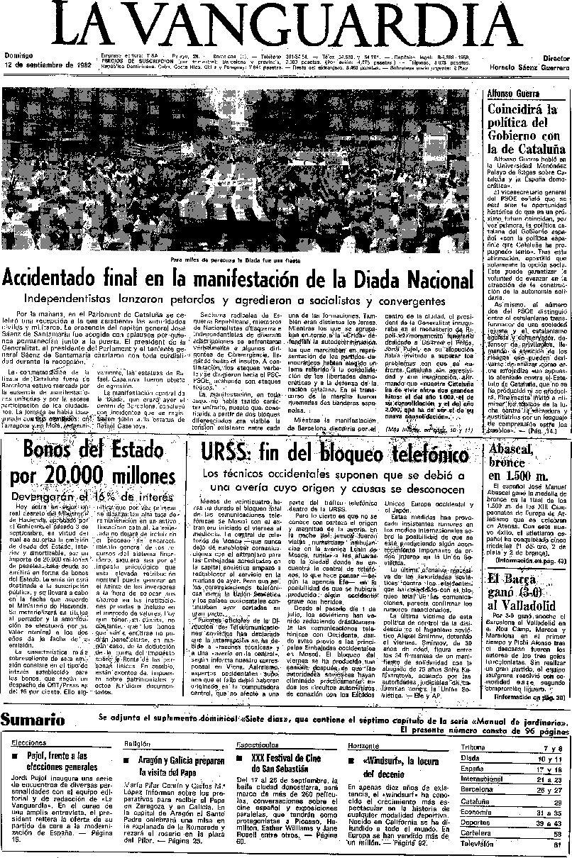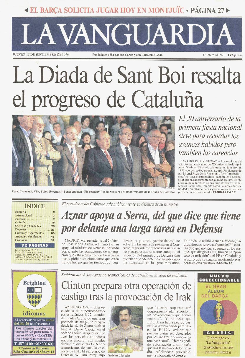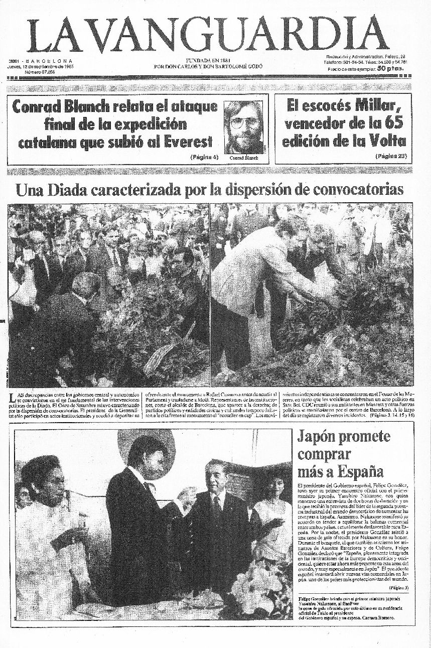Recopilación de portadas de los días posteriores (y alguno anterior debido a que hubo una serie de años en los que La Vanguardia no se publicaba los lunes) a la Diada -11 de septiembre- de La Vanguardia desde 1939.