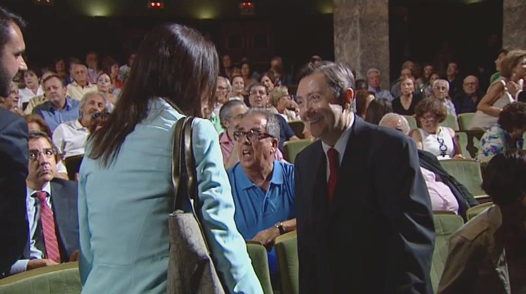 El salón de actos del Círculo de Bellas Artes se ha llenado hasta los topes, y muchos han tenido que esperar en el exterior, siguiendo el acto a través de pantallas