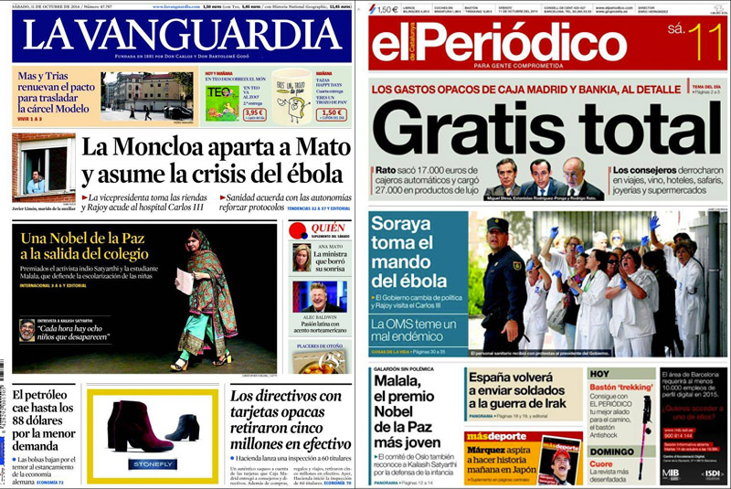 En La Vanguardia, la única referencia a estos actos se produjo en la edición del viernes, en la que un pie de foto bajo una imagen de Alicia Sánchez-Camacho y el presidente de SCC, Josep Ramon Bosch, apuntaba a que había "actos convocados por SCC para el 12-O" de los que no se decía ni hora ni lugar.
