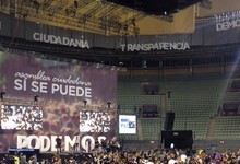 Ante más de 8.000 personas y con enormes pancartas con palabras como "pueblo" comienza una asamblea que llega dividida en dos bandos.