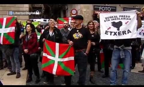 Agresiones y amenazas de los "observadores" abertzales del 9N, a los concentrados en la plaza de San Jaime en defensa de la soberanía nacional.