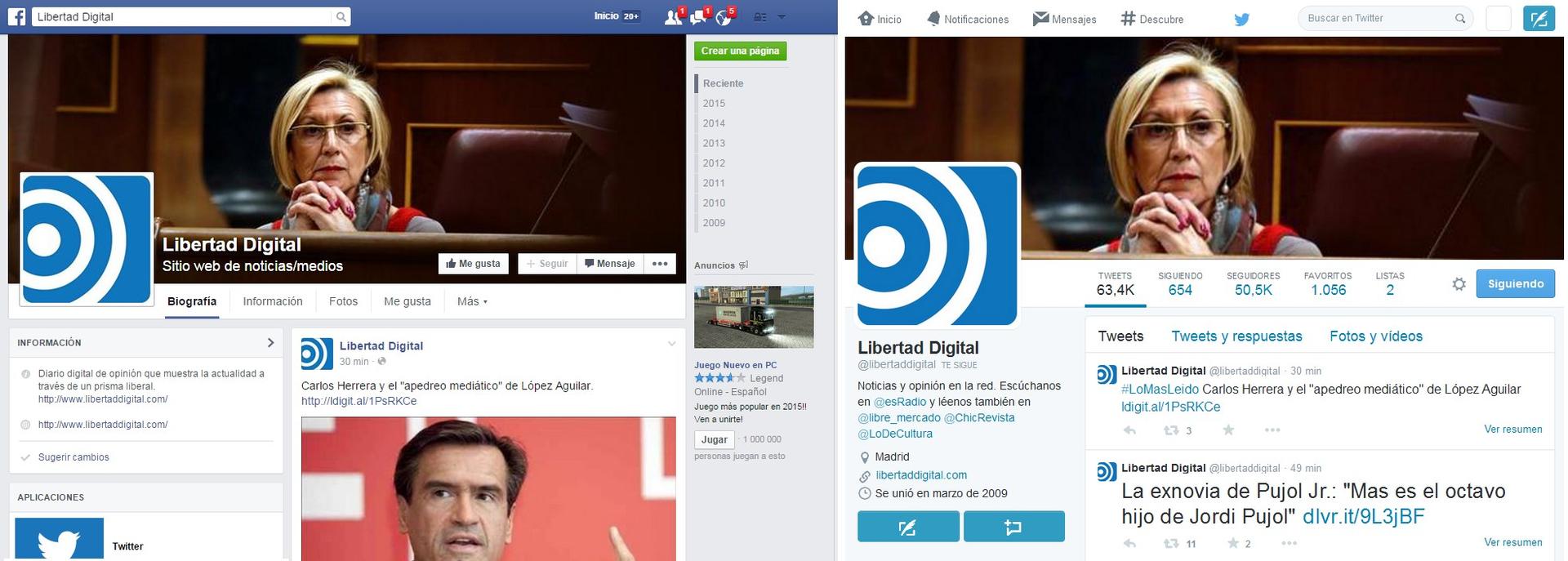 Los perfiles oficiales de Twitter y Facebook de Libertad Digital, un medio de comunicación, se encabezan con imágenes que van rotando diariamente relativas a la actualidad. Entre los personajes que han aparecido en ellas figuran Mariano Rajoy, Barack Obama o el Papa Francisco. Cualquier repaso a periódicos o radios y televisiones en España esta semana evidencia hasta qué punto UPyD y Rosa Díez son de máxima actualidad.