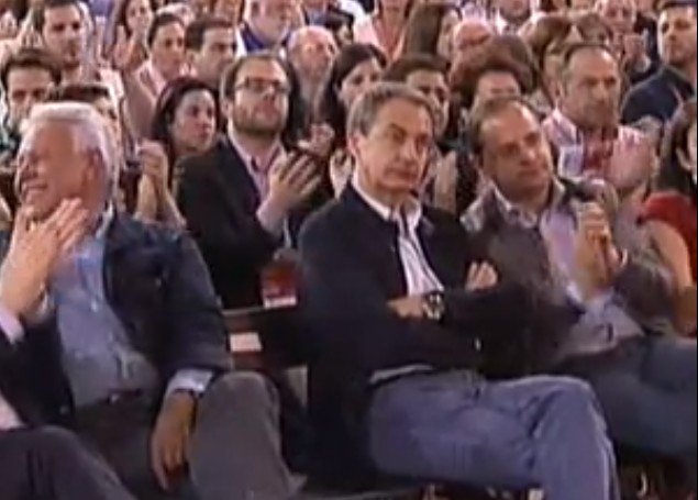 Su reunión con los dirigentes de Podemos le sigue pasando factura. "¡Qué careto tiene Zapatero!", ha sido, entre risas, el comentario más repetido en la Conferencia Municipal del PSOE. Relegado y sentado junto al número dos del PSOE, César Luena, mientras su predecesor, Felipe González, se sienta junto al secretario general, Pedro Sánchez. Rictus serio, piernas y brazos cruzados, se convertía en el runrún del pabellón 2 de IFEMA. "Menuda humillación", decía un miembro del PSOE.