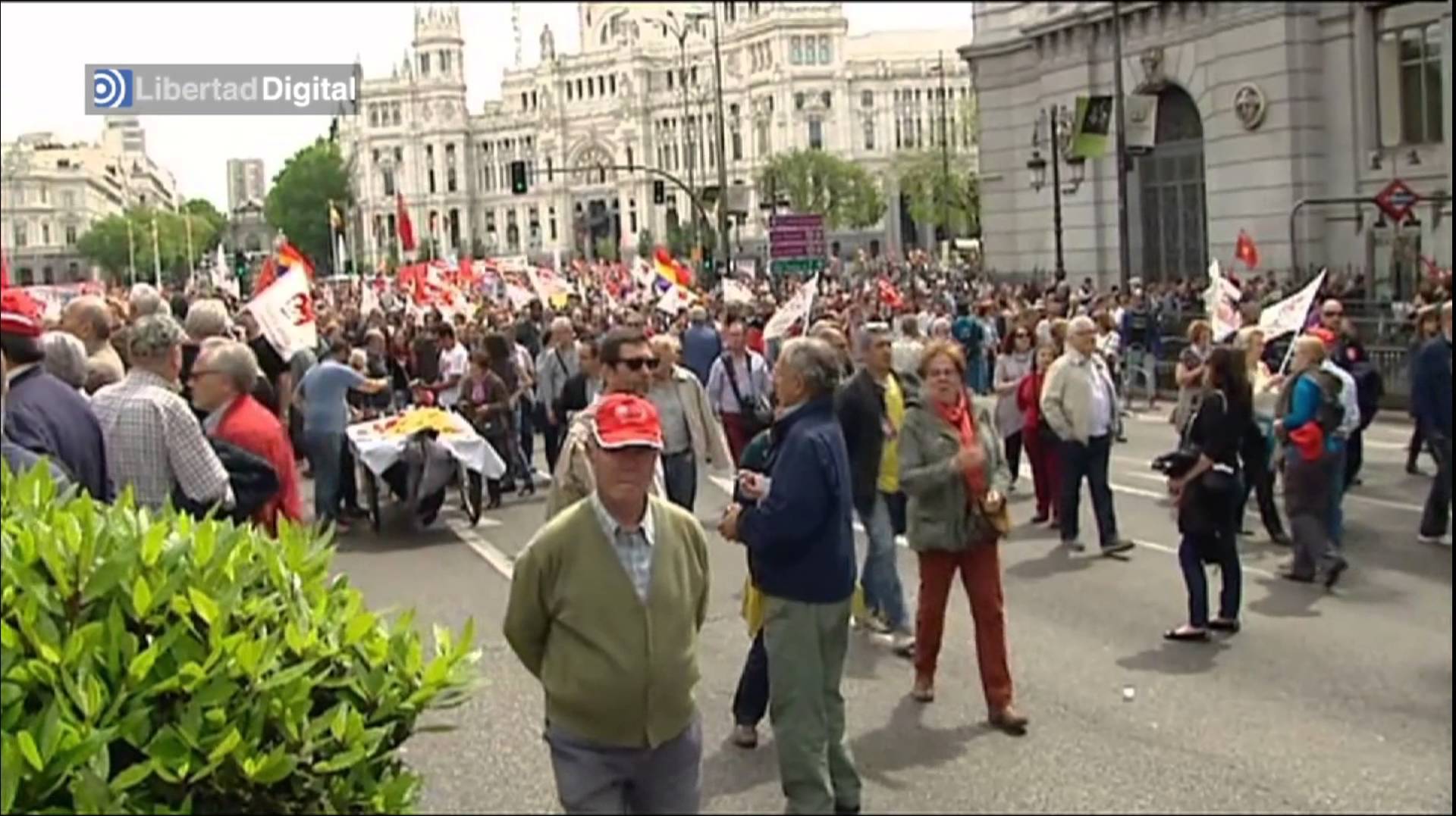 En el día del trabajador, los sindicatos de UGT y CC.OO. apenas consiguieron movilizar a unas pocas miles de personas en una marcha en la que se pudo ver grandes huecos.