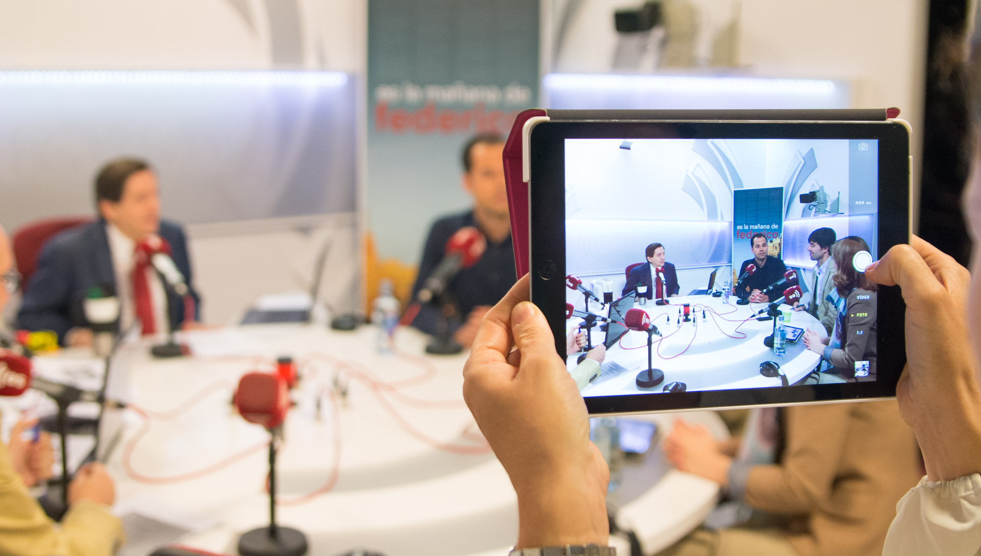 Un momento de la tertulia captado a través de la pantalla de un iPad