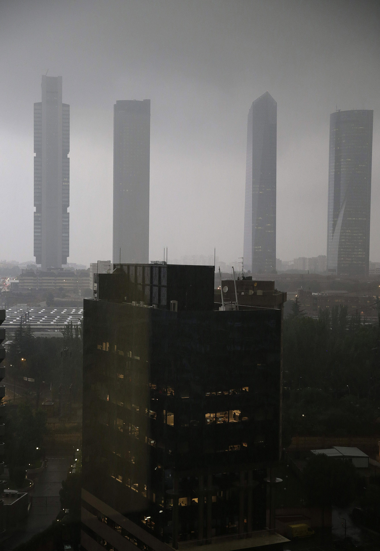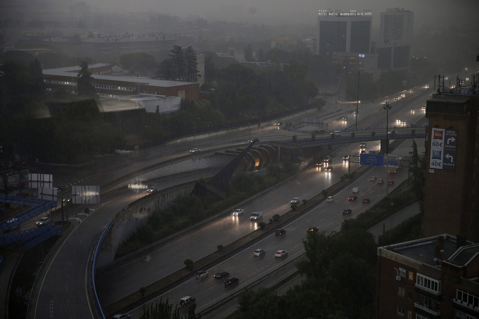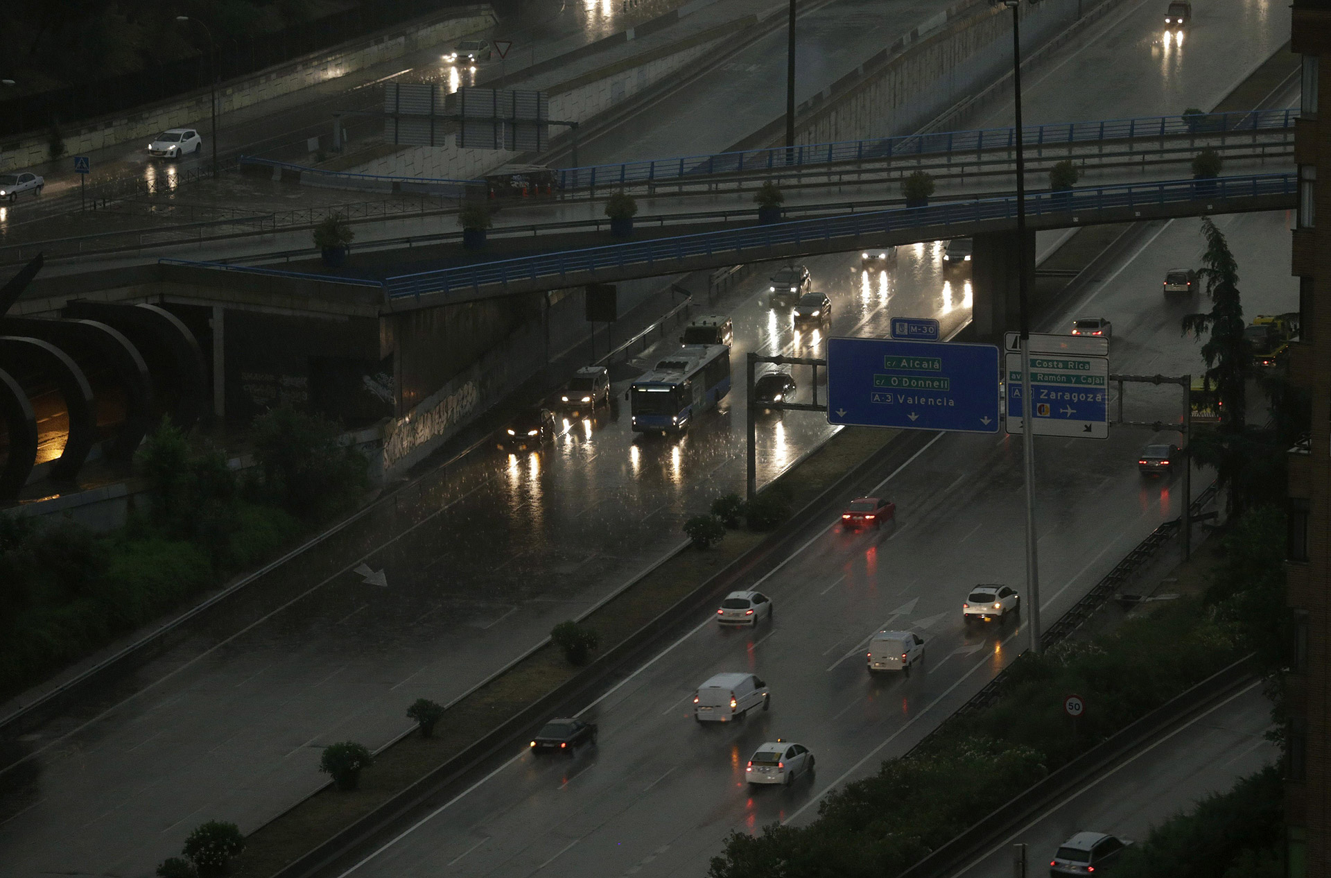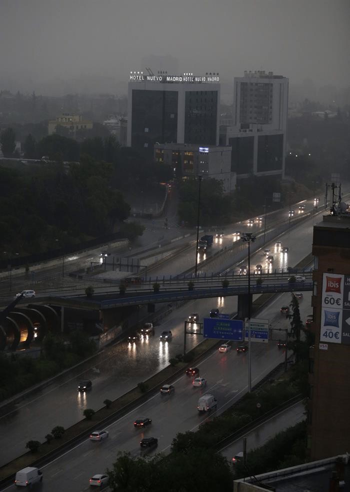 Madrid se ha visto sorprendido este jueves por una monumental tormenta que ha colapsado la ciudad, ha provocado inundaciones y ha oscurecido el cielo hasta parecer que la noche había caído sobre Madrid en pleno mediodía.