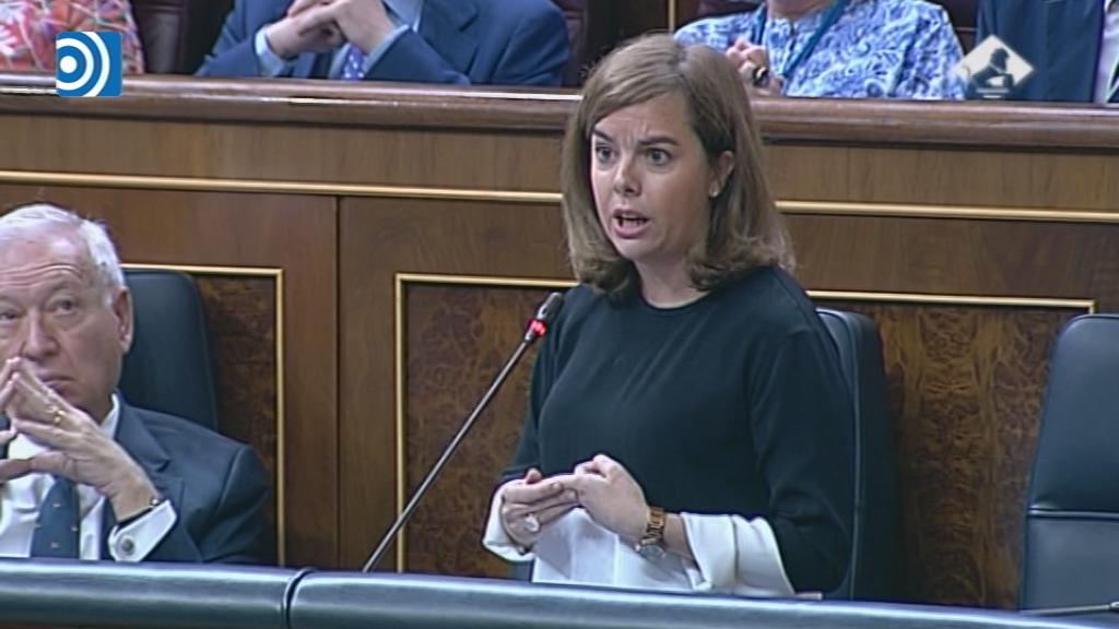 Para la vicepresidenta, "patética" es la posición del Grupo Socialista, y preguntó a Hernando "por qué su partido apoya" a concejales "radicales" que no respetan "ni el más mínimo de los derechos humanos", como la libertad religiosa. También se quejó de que el nuevo aliado del PSOE, en relación a Podemos, ponga ahora en tela de juicio la política antiterrorista.