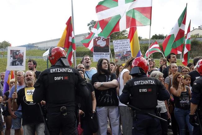 Consignas antitaurinas, antimonárquicas y a favor de la República se han cruzado hoy en la concentración celebrada en San Sebastián con motivo del inicio de la feria taurina de Semana Grande, a la que asiste el rey Juan Carlos acompañado de la infanta Elena y los dos hijos de ésta.