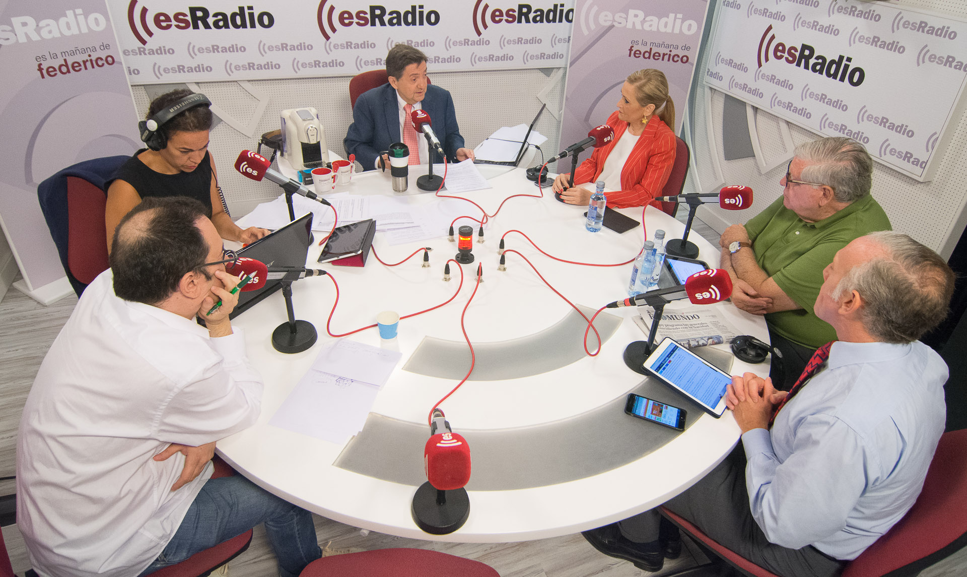 La mesa de tertulia con Pepe García Domínguez, Rosana Laviada, Federico Jiménez Losantos, Cristina Cifuentes, Víctor de la Serna y Eduardo Inda