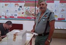 Un miembro de la Hermanada de antiguos legionarios vota con el uniforme | LD | LD