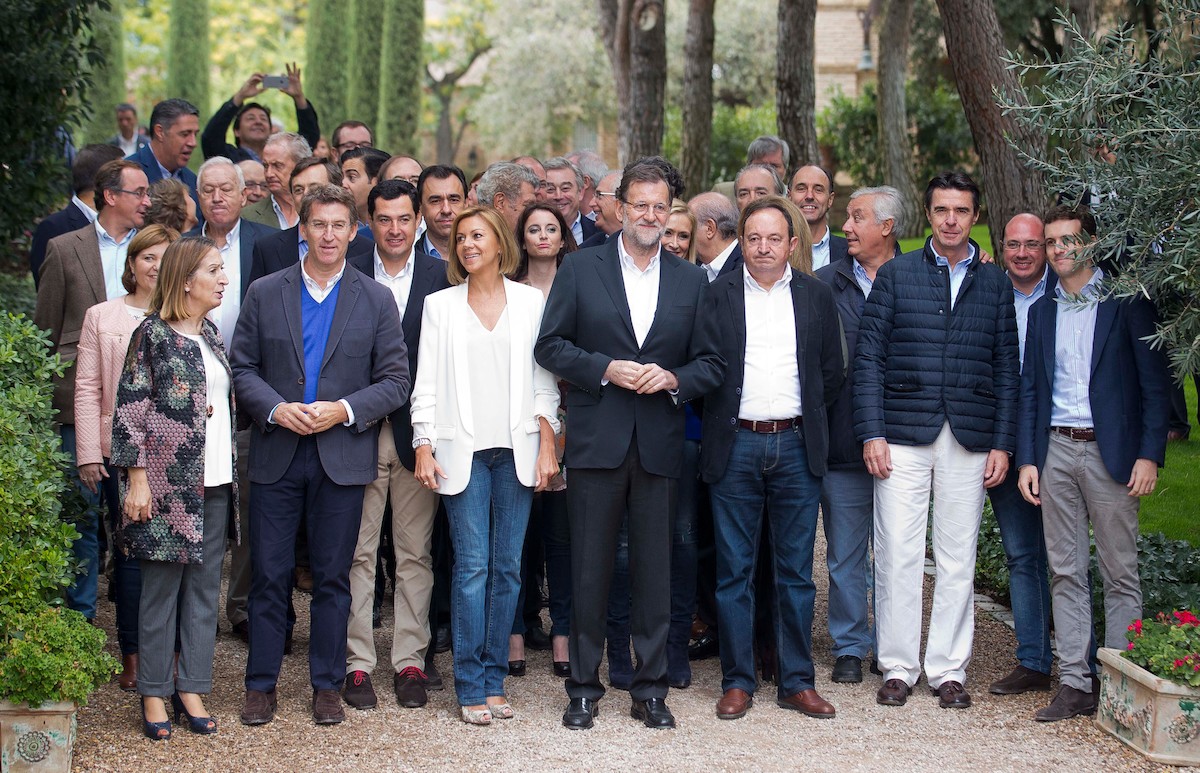 Sin "vocación de bisagra", Rajoy reclamó unidad. "Somos el partido más grande de España", zanjó, para poner una vez en entredicho al resto de formaciones en liza. Los presentes aplaudieron a rabiar y se le abalanzaron, conscientes de que -entre otras cosas- se juegan su presencia en las listas. Había, por cierto, mucho nerviosismo en este sentido. Aunque, pese a esa escenificación -uno a uno, los barones abrazaron o besaron al líder tras elogiar de forma encendida su gestión y después se fueron a comer juntos-, en privado se reconoce sin titubeos que se ha puesto una mera tirita hasta el 20 de diciembre. Después, si hay hecatombe, el partido se romperá en añicos.