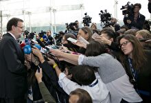 Rajoy responde a los periodistas tras la reunión del PPE. | EFE