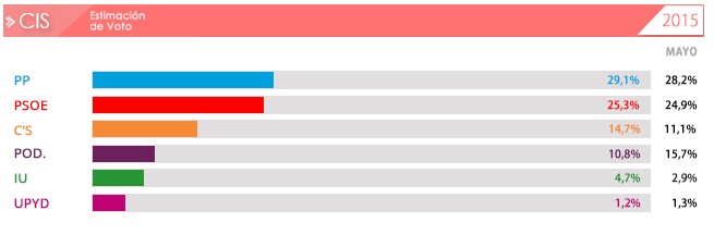 Estos porcentajes son siempre más bajos que la estimación de voto: que es el resultado de una serie de cálculos que hacen los sociólogos a partir de la intención directa de voto y otros elementos que se obtienen en otra preguntas, por ejemplo, la simpatía por los distintos partidos y el recuerdo de voto, lo que los encuestados afirman que votaron en las anteriores elecciones.