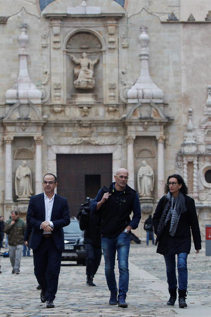 Pese a que tenía tiempo de sobra para llegar a la reunión de Poblet, no acudió. En el monasterio cisterciense se pudo ver a la mayoría de parlamentarios separatistas del grupo de Mas y Junqueras, pero no al máximo dirigente de la efímera coalición. Romeva, Rull, Turull, Rovira y Junqueras acudieron a la cita con aire de preocupación y pesimismo. Los diputados de la CUP se mantienen en sus trece, no se apean del burro y están muy irritados por las filtraciones que atribuyen a Mas y por las presiones que reciben de los medios afectos a la Generalidad. De ahí que el jueves a última hora de la tarde decidieran hacer público el documento con el que negocian.